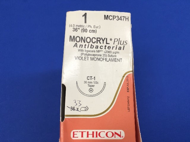 - Ethicon MCP347H MONOCRYL Plus, Taper Point, CT-1 36 - Box of 33