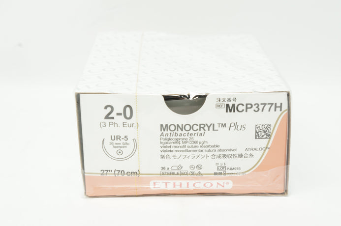 - Ethicon MCP377H 2-0 MONOCRYL Plus, UR-5, 36mm 5/8c Taper, 27inch (x) - Box of 36