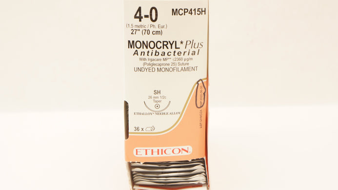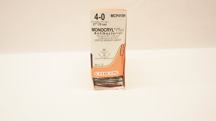 - Ethicon MCP415H 4-0 Monocryl Plus Stre SH 26mm 1/2c Taper 27inch (x) - Box of 36