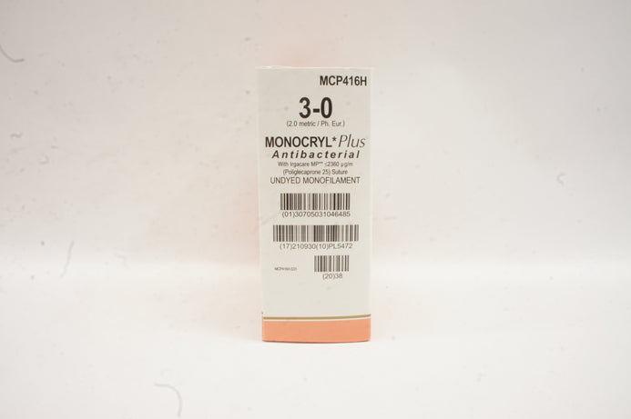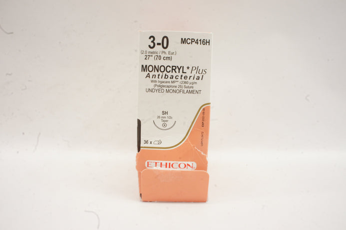 Ethicon MCP416H 3-0 MONOCRYL Plus, SH, 26mm 1/2c Taper, 27inch - Box of 36
