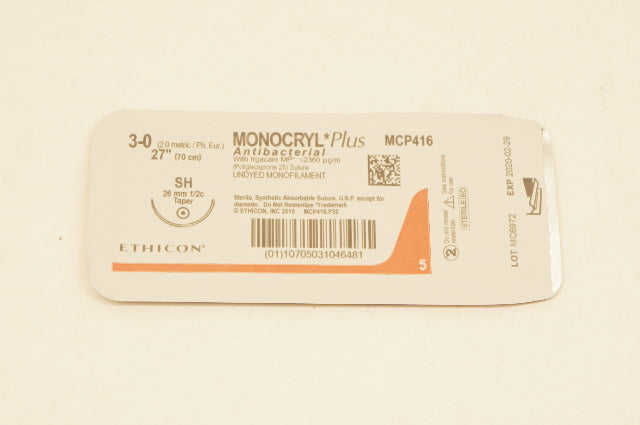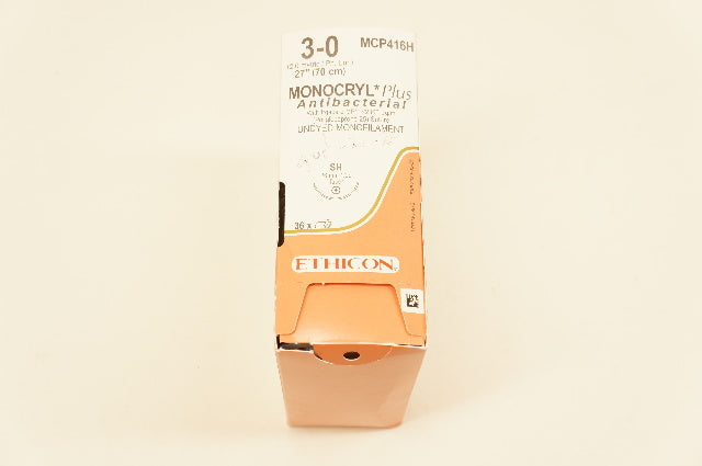 Ethicon MCP416H 3-0 MONOCRYL Plus, SH, 26mm 1/2c Taper, 27inch (x) - Box of 36
