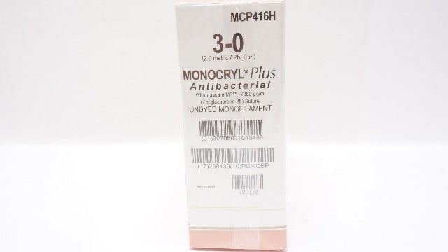 - Ethicon MCP416H 3-0 MONOCRYL Plus Stre SH 26mm 1/2c Taper 27inch(x) - Box of 29