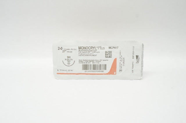 Ethicon MCP417 2-0 MONOCRYL Plus Antibacterial Stre SH 26mm 1/2c Taper 27inch