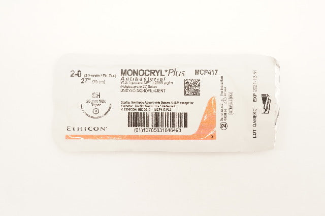 - Ethicon MCP417 2-0 MONOCRYL Plus SH 26mm 1/2c Taper 27inch (x)