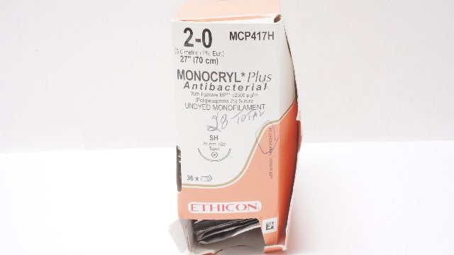 Ethicon MCP417H 2-0 Monocryl Plus Stre SH 26mm 1/2c Taper 27inch (x) - Box of 28