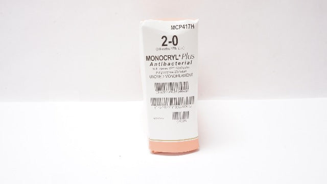 Ethicon MCP417H 2-0 Monocryl Plus Antibacterial With Irgacare MP ≤2360µg/m Poliglecaprone 25 Suture Undyed Monofilament SH 26mm 1/2c Taper 27inch