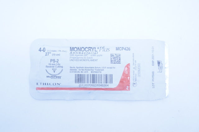 Ethicon MCP426 4-0 MONOCRYL Plus, Reverse Cutting, PS-2, 27inch