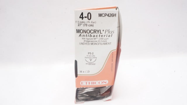 Ethicon MCP426H MONOCRYL 4-0 Plus, PS-2, 19mm 3/8c , 27inch (x) - Box of 32