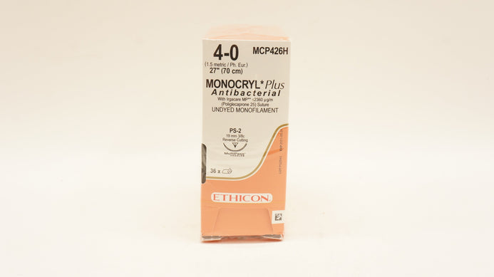 - Ethicon MCP426H MONOCRYL Plus Suture PS-2 19mm 3/8c Taper 27inch - Box of 36 (x)