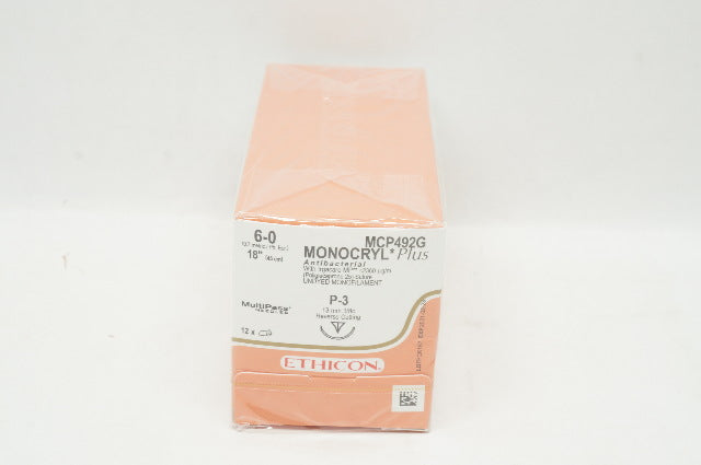 - Ethicon MCP492G 6-0 MONOCRYL Plus, P-3, 13mm 3/8c, 18inch (x) - Box of 12
