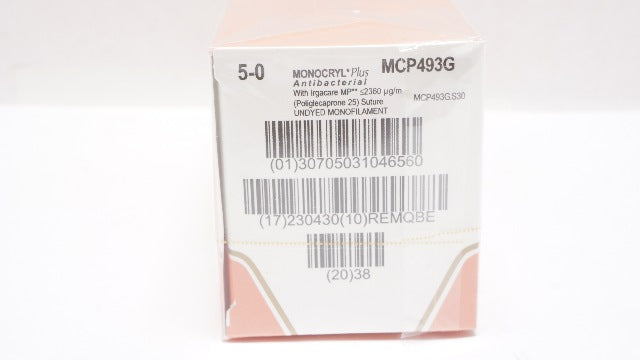 Ethicon MCP493G 5-0 MONOCRYL Antibacterial Poliglecprone 25 Suture Undyed Monofilament P-3 Reverse Cutting 13mm 3/8c, 18inch