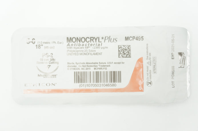 Ethicon MCP495 5-0 MONOCRYL Plus, PS-2, 19mm 3/8c, 18inch