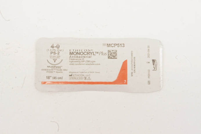- Ethicon MCP513 4-0 MONOCRYL Plus PS-2 19mm 3/8c Reverse Cutting, 18inch (x)