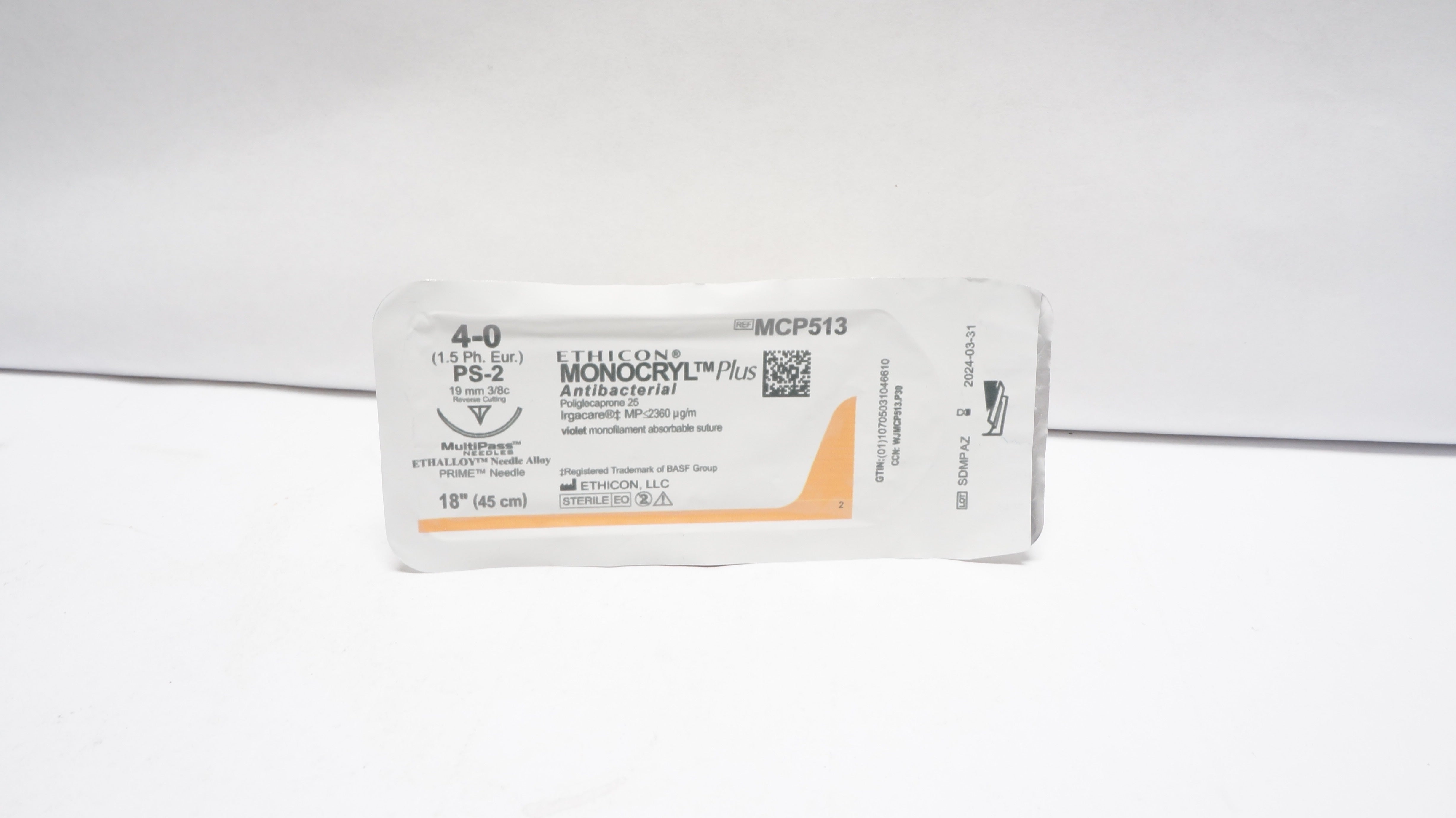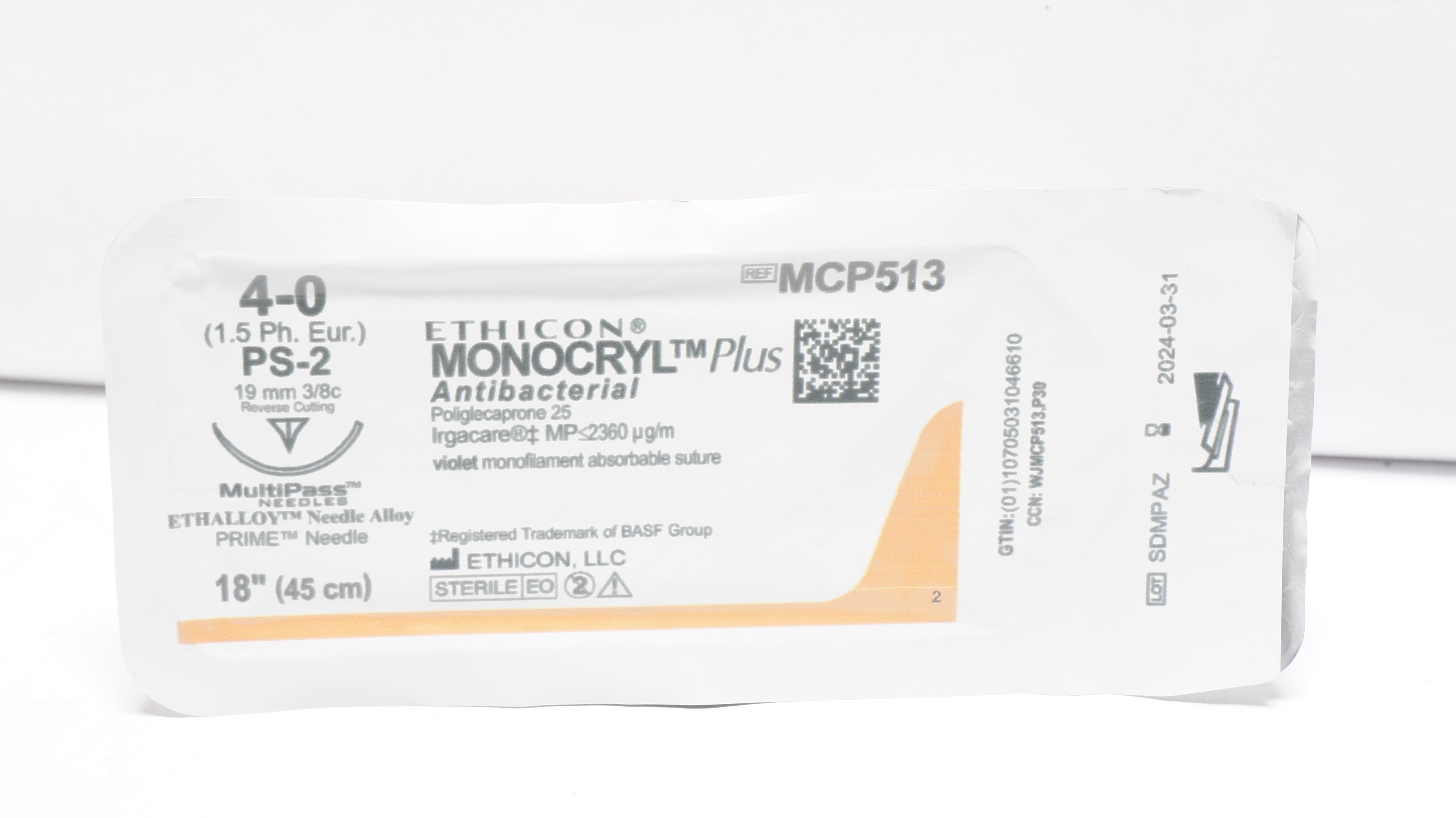 - Ethicon MCP513 4-0 MONOCRYL Plus Stre PS-2 19mm 3/8c Reverse Cutting,18inch (x)