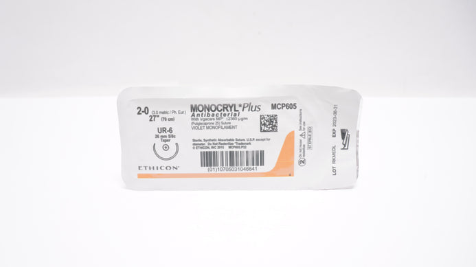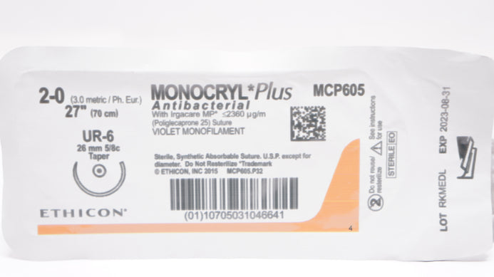 - Ethicon MCP605 2-0 MONOCRYL Plus Stre UR-6 26mm 5/8c Taper, 27inch (x)