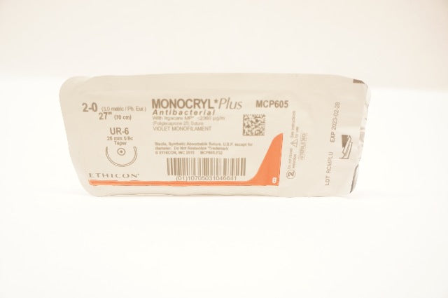 Ethicon MCP605 2-0 MONOCRYL Plus Violet UR-6 26mm 5/8c Taper 27inch