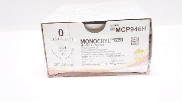Ethicon MCP946H 0 MONOCRYL Plus, CT-1, 36mm 1/2c Taper, 36inch - Box of 36