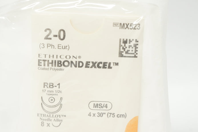 Ethicon MX523 2-0 ETHIBOND EXCEL Stre. RB-1 Taper Point 17mm, Ethalloy Ndle., 4 x 30inch (75cm)