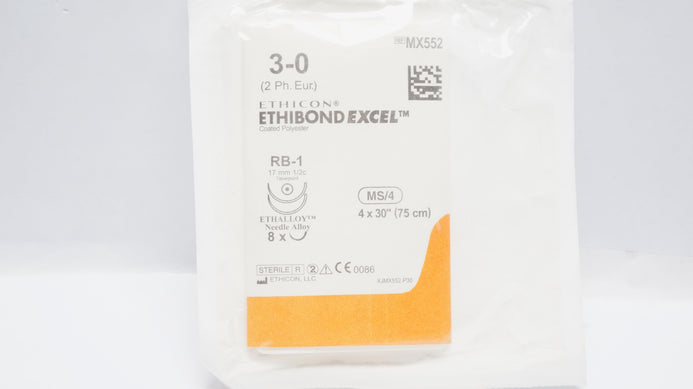 - Ethicon MX552 3-0 Ethibond Excel Stre RB-1 17mm 1/2c Taperpoint, 30inch (x)