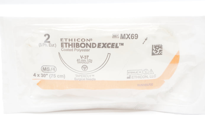 - Ethicon MX69 2 ETHIBOND EXCEL Polyester Stre V-37 40mm 1/2c Tapercut, 4 x 30inch