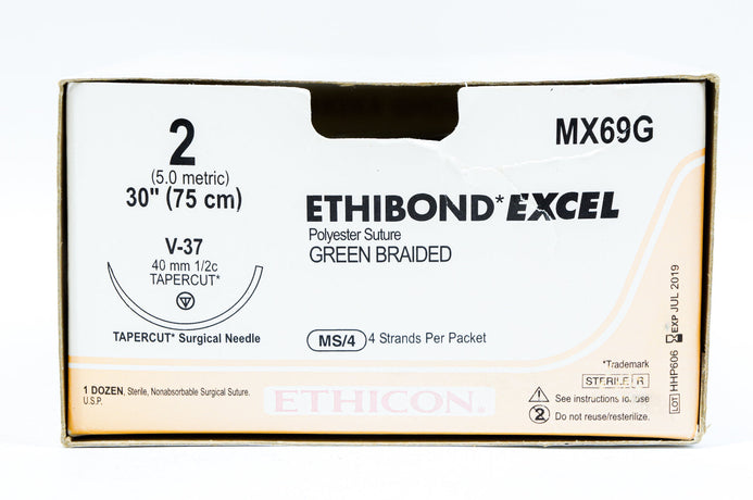 - Ethicon MX69G 2 ETHIBOND EXCEL, V-37, 40mm 1/2c TAPERCUT, 30inch (x) - Box of 6