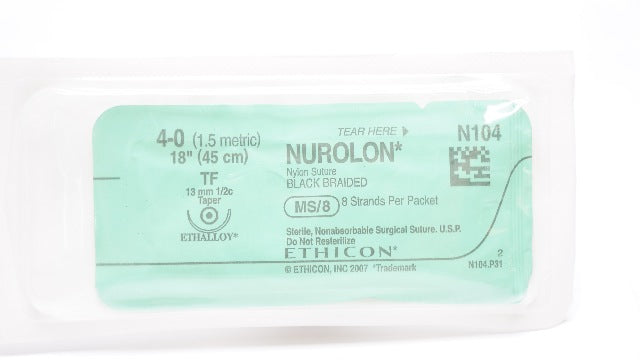 - Ethicon N104 4-0 NUROLON Nylon, TF, 13mm 1/2c Taper, 18inch