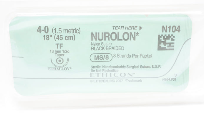 Ethicon N104 4-0 NUROLON Nylon, TF, 13mm 1/2c Taper, 18inch