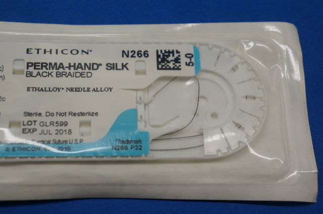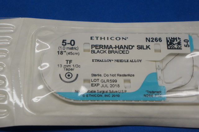 Ethicon N266 5-0 PERMA-HAND SILK, TF 13mm 1/2c Taper, Black Braided, 18