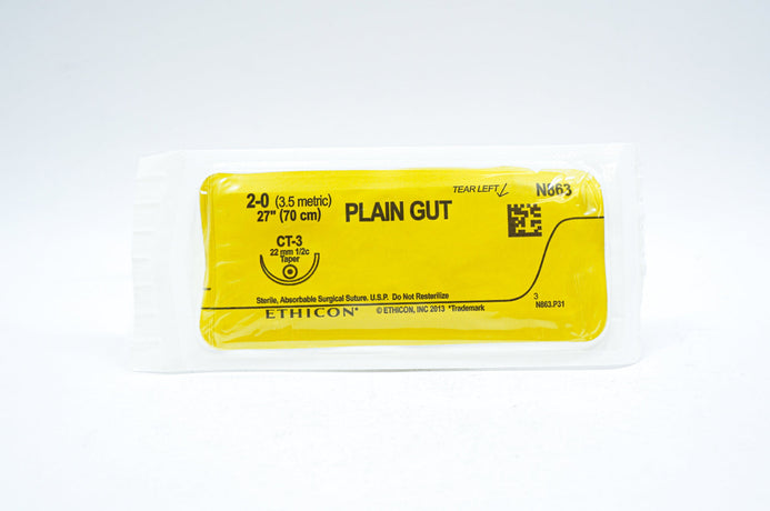 - Ethicon N863 2-0 PLAIN GUT, CT-3, 22mm 1/2c Taper, 27inch (x) - Lot of 28