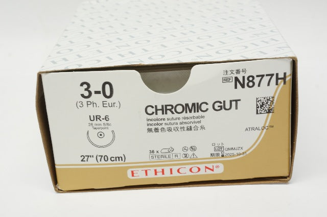 Ethicon N877H 3-0 Chromic Gut 27inch Taper Point UR-6 26mm - Box of 36