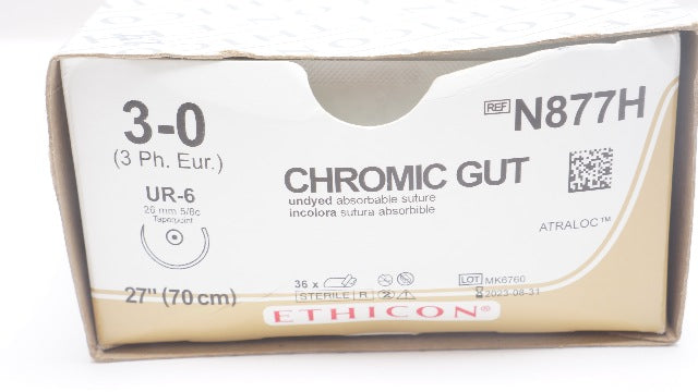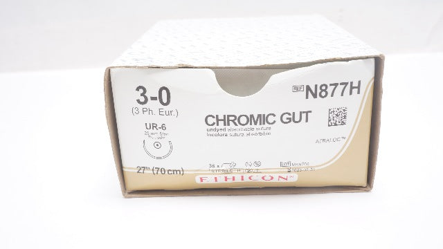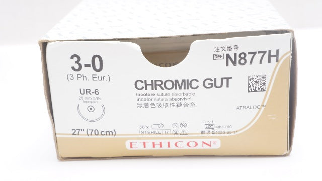 Ethicon N877H 3-0 Chromic Gut Undyed Absorbable Suture UR-6 26mm 5/8c Taperpoint 27inch