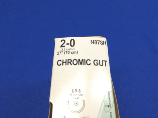 Ethicon N878H Chromic Gut, Taper Point, Absorbable, UR-6 26mm 5/8 Circle, Chromic Monofilament 27" 70cm, Size: 2-0