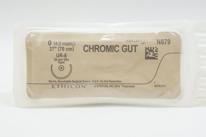 Ethicon N879 0 CHROMIC GUT, UR-6, 26mm 5/8c Taper, 27inch