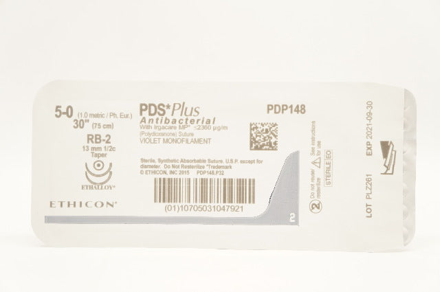 Ethicon PDP148 5-0 PDS Plus W/ Ingacare MP Stre RB-2 13mm 1/2c Taper 30 inch