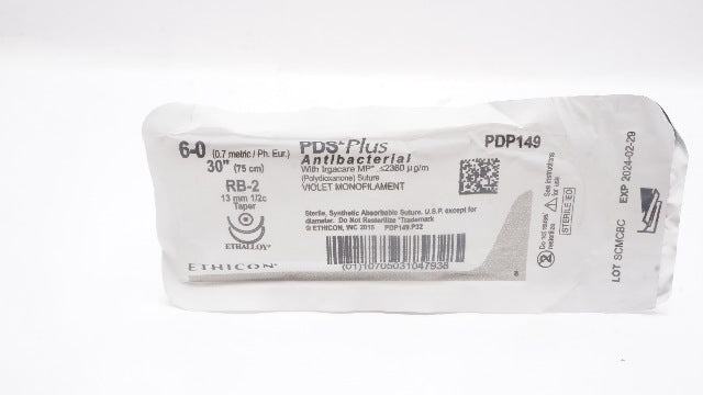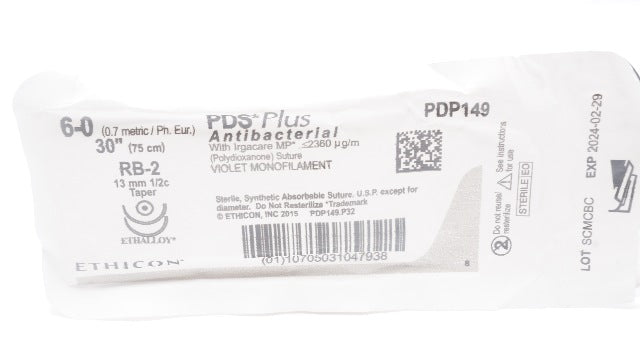 - Ethicon PDP149 6-0 PDS Plus RB-2 13mm 1/2c Taper, 30inch