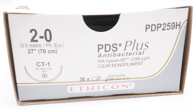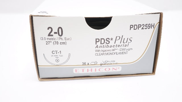 Ethicon PDP259H 2-0 PDS Plus Antibacterial CT-1 36mm 1/2c Taper 27in-Box of30(x)