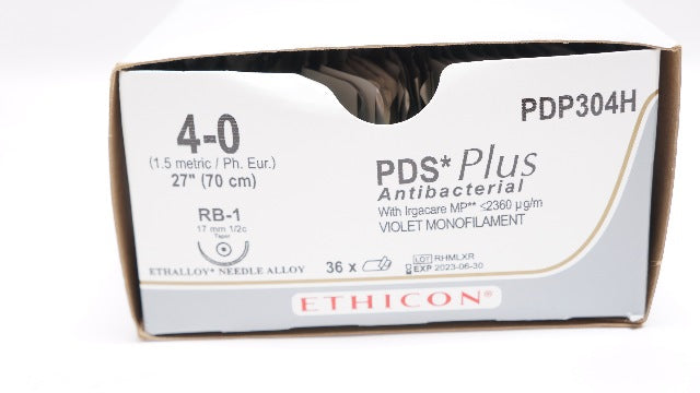 - Ethicon PDP304H 4-0 PDS Plus Stre RB-1 17mm 1/2c Taper 27inch (x) - Pack of 34