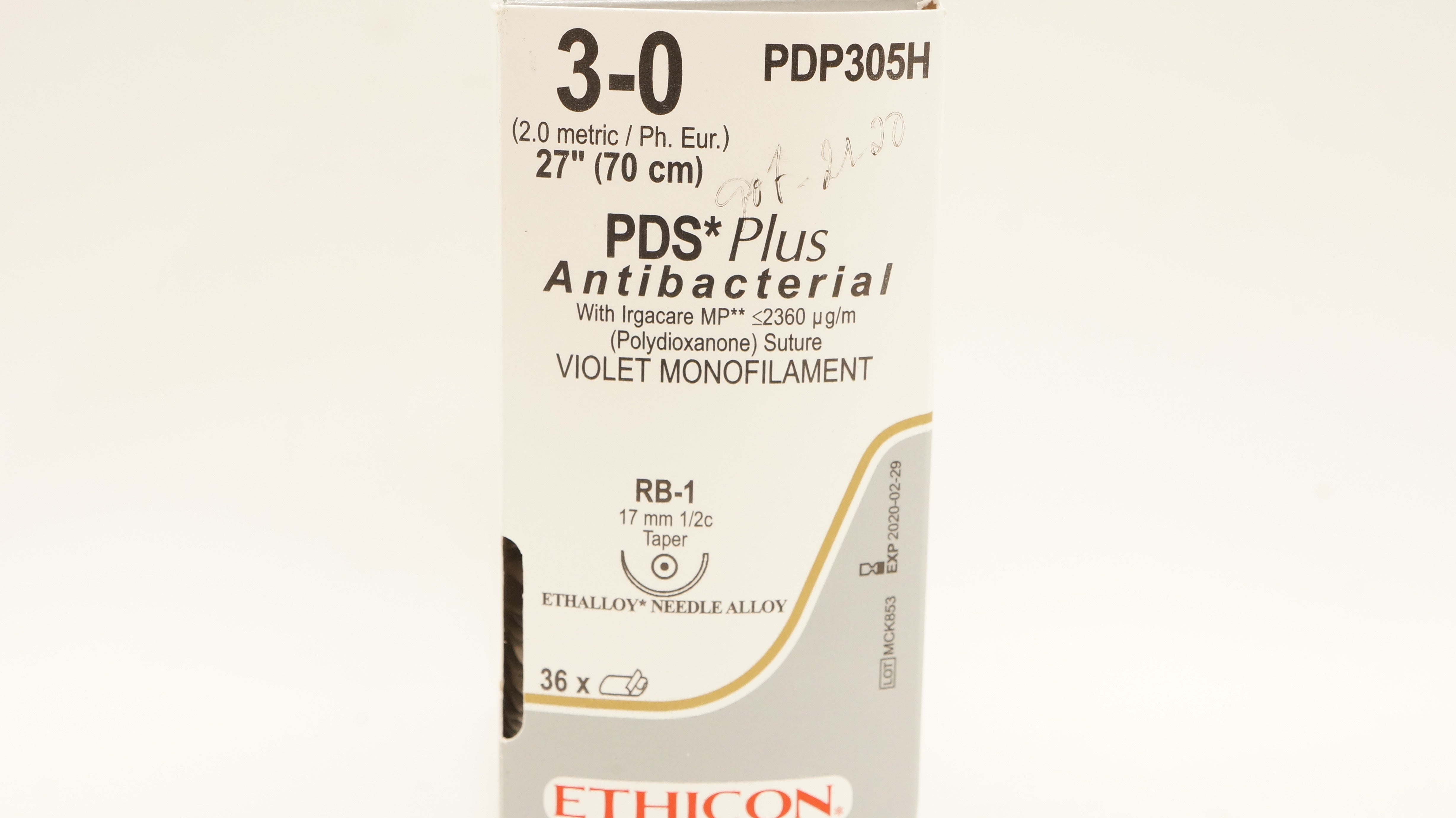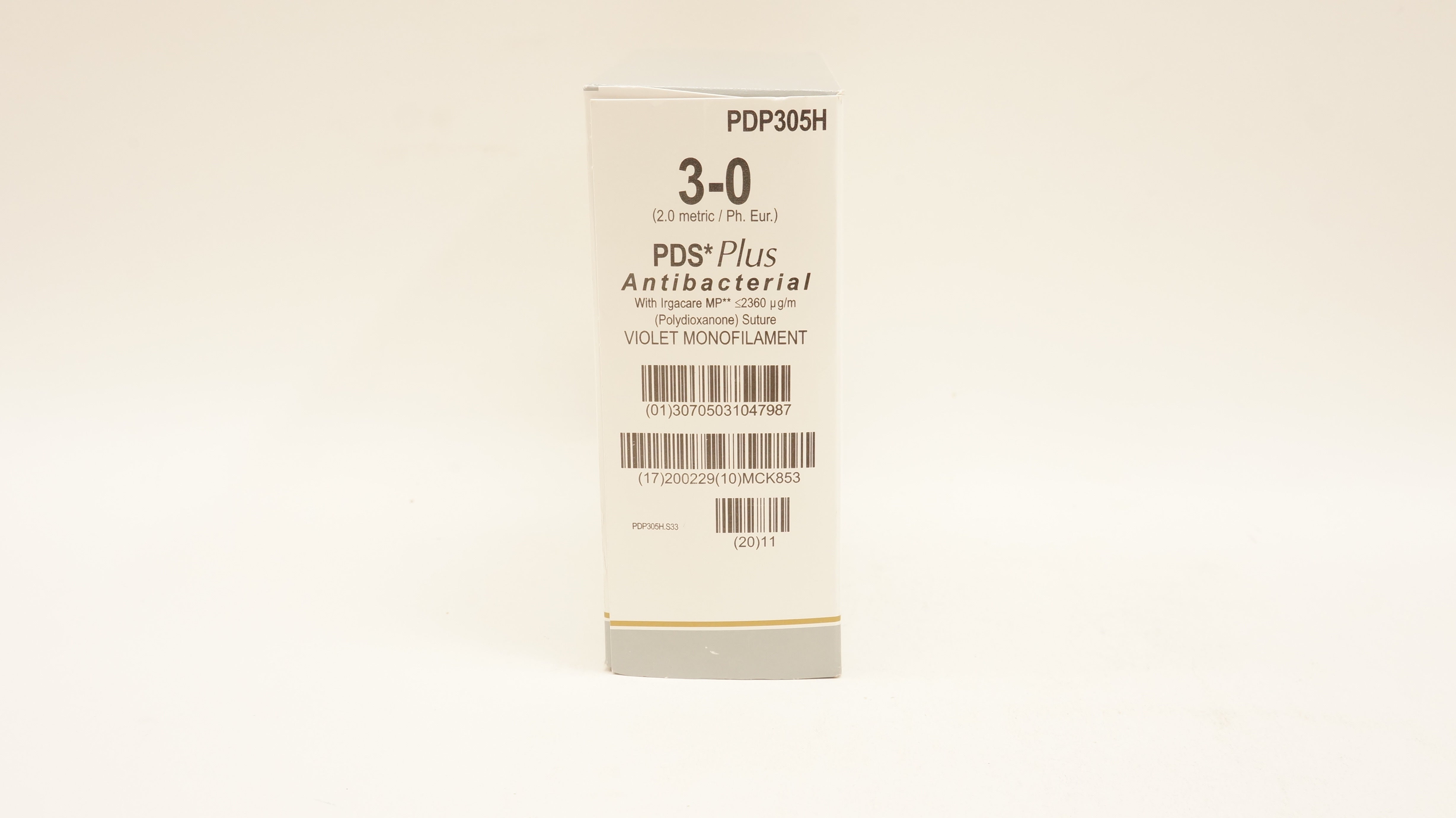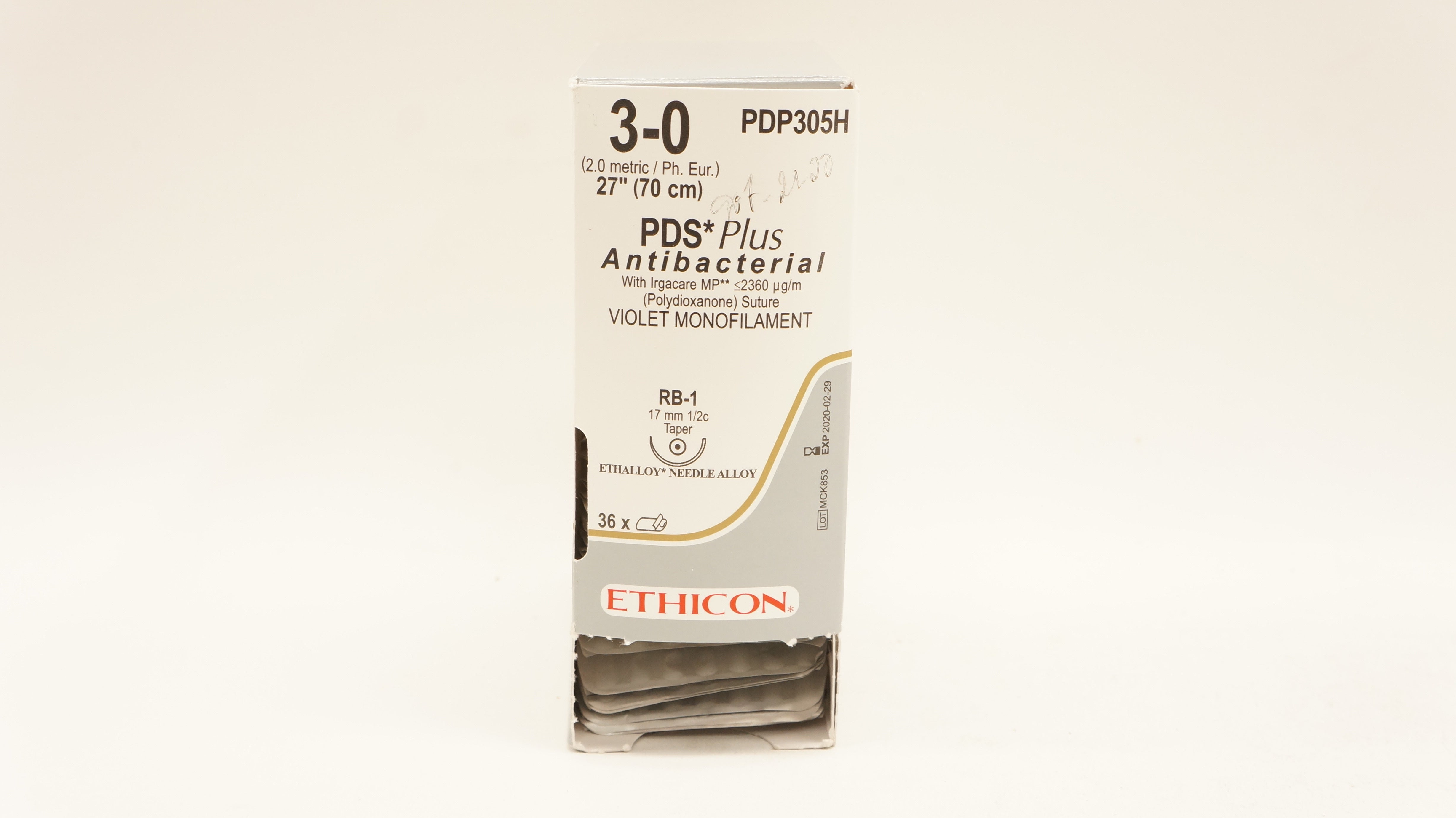 Ethicon PDP305H 3-0 PDS Plus Antibacterial With Irgacare MP ≤2360 µg/m (Polydioxanone) Suture Violet Monofilament RB-1 17mm 1/2c Taper Ethalloy Needle Alloy 27inch