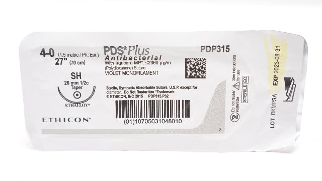 Ethicon PDP315 4-0 PDS Plus Antibacterial Polydioxanone Suture Violet Monofilament SH 26mm 1/2c Taper, 27inch