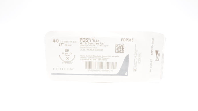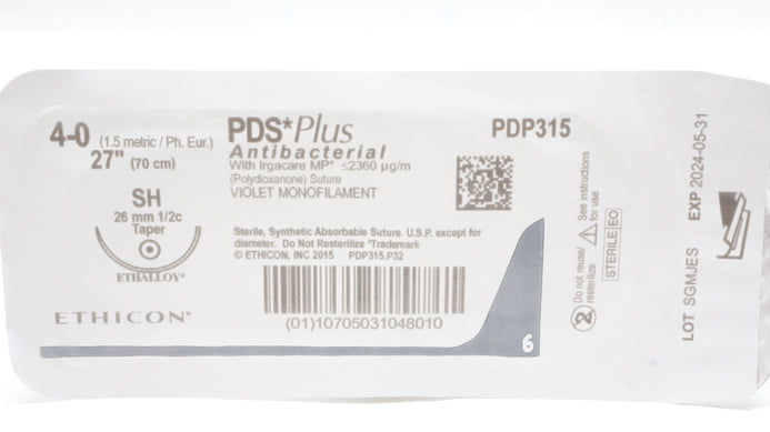 - Ethicon PDP315 4-0 PDS Plus Polydioxanone Stre SH 26mm 1/2c Taper, 27inch (x)