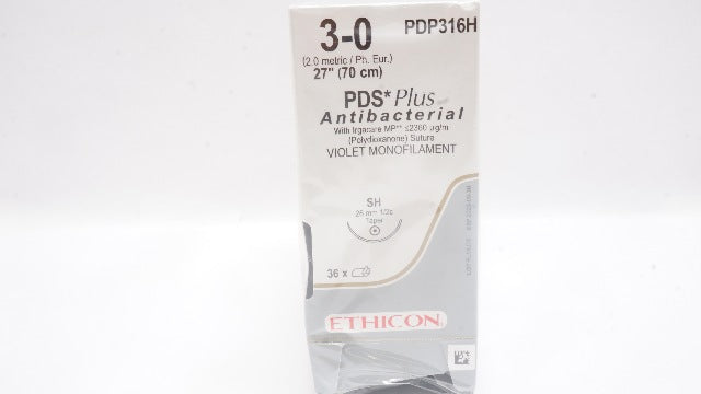 Ethicon PDP316H 3-0 PDS Plus Antibacterial Polydioxanone Suture VIOLET MONOFILAMENT SH 26mm 1/2c Taper, 27inch