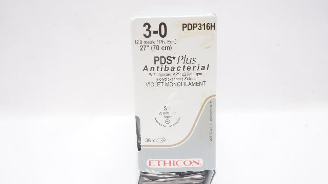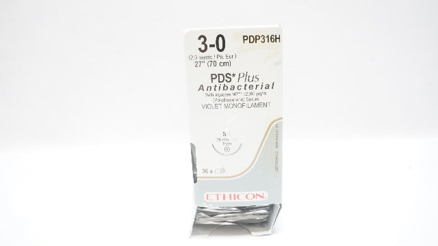 Ethicon PDP316H 3-0 PDS Plus Antibacterial With Irgacare MP ≤2360µg/m Polydioxanone Suture VIOLET MONOFILAMENT SH 26mm 1/2c Taper 27inch