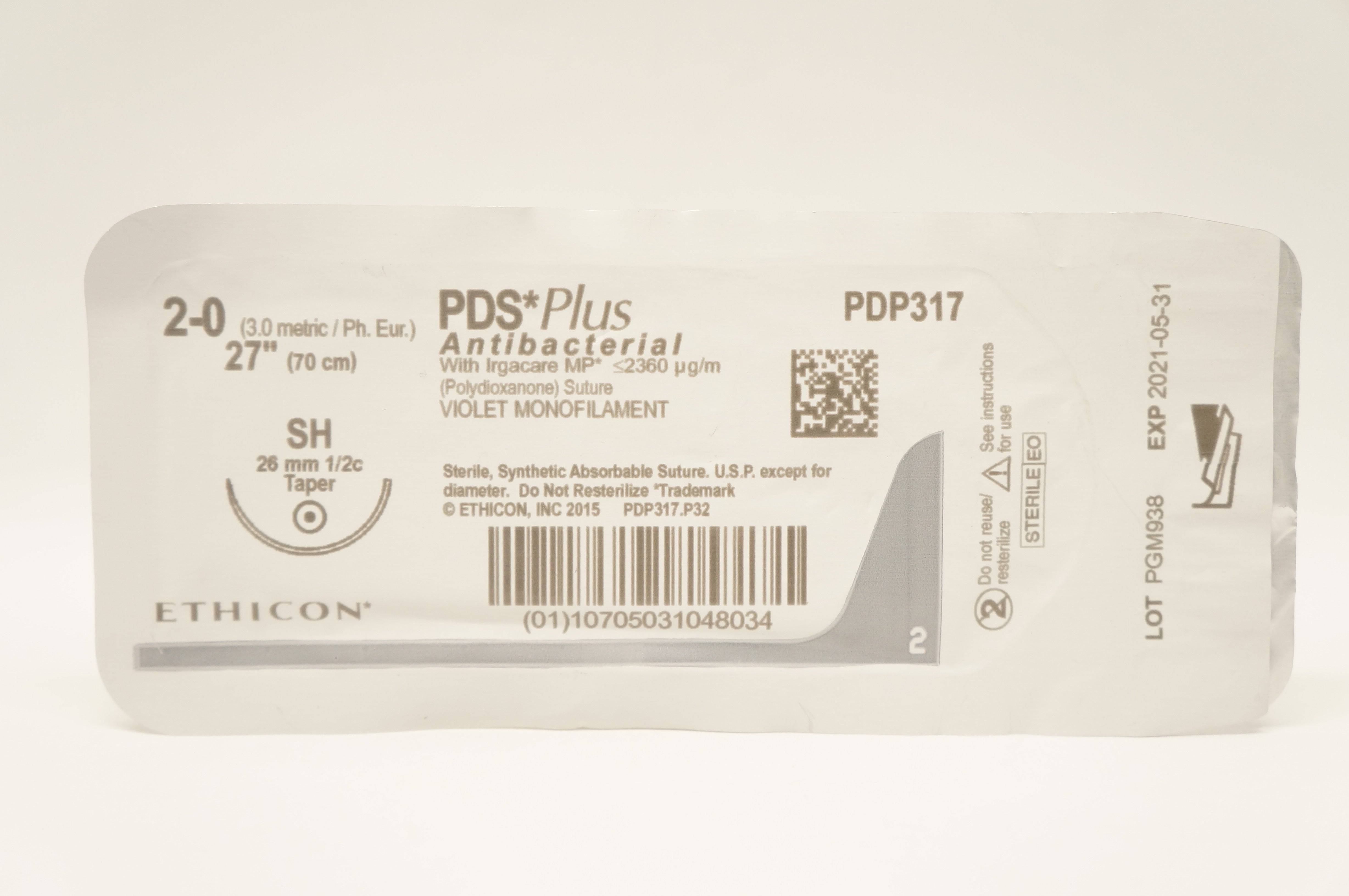 Ethicon PDP317 2-0 PDS Plus Antibacterial Stre SH 26mm 1/2c Taper, 27inch (x)