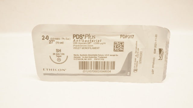 Ethicon PDP317 2-0 PDS Plus, SH, 26mm 1/2c Taper, 27inch (x)