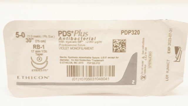 Ethicon PDP320 5-0 PDS Plus Antibacterial Stre , RB-1, 17mm 1/2c Taper, 30in.(x)