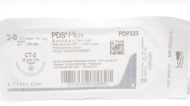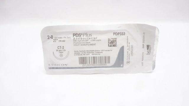Ethicon PDP333 2-0 PDS Plus Antibacterial Stre CT-2 26mm 1/2c Taper, 27inch (x)