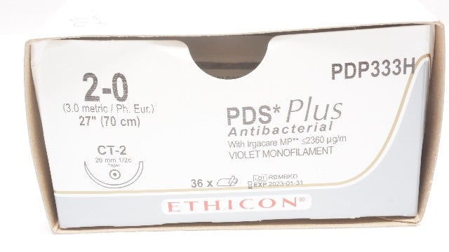 - Ethicon PDP333H 2-0 PDS Plus CT-2 26mm 1/2c, Taper 27inch (x) - Box of 22