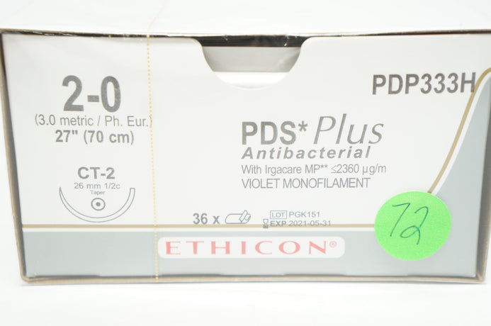 Ethicon PDP333H 2-0 PDS Plus Stre CT-2 26mm 1/2c, Taper 27inch (x) - Box of 36