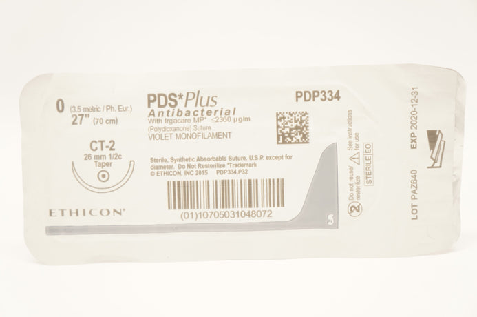 Ethicon PDP334 0 Antibacterial Violet Monofilament CT-2 26mm 1/2c Taper, 27in(x)