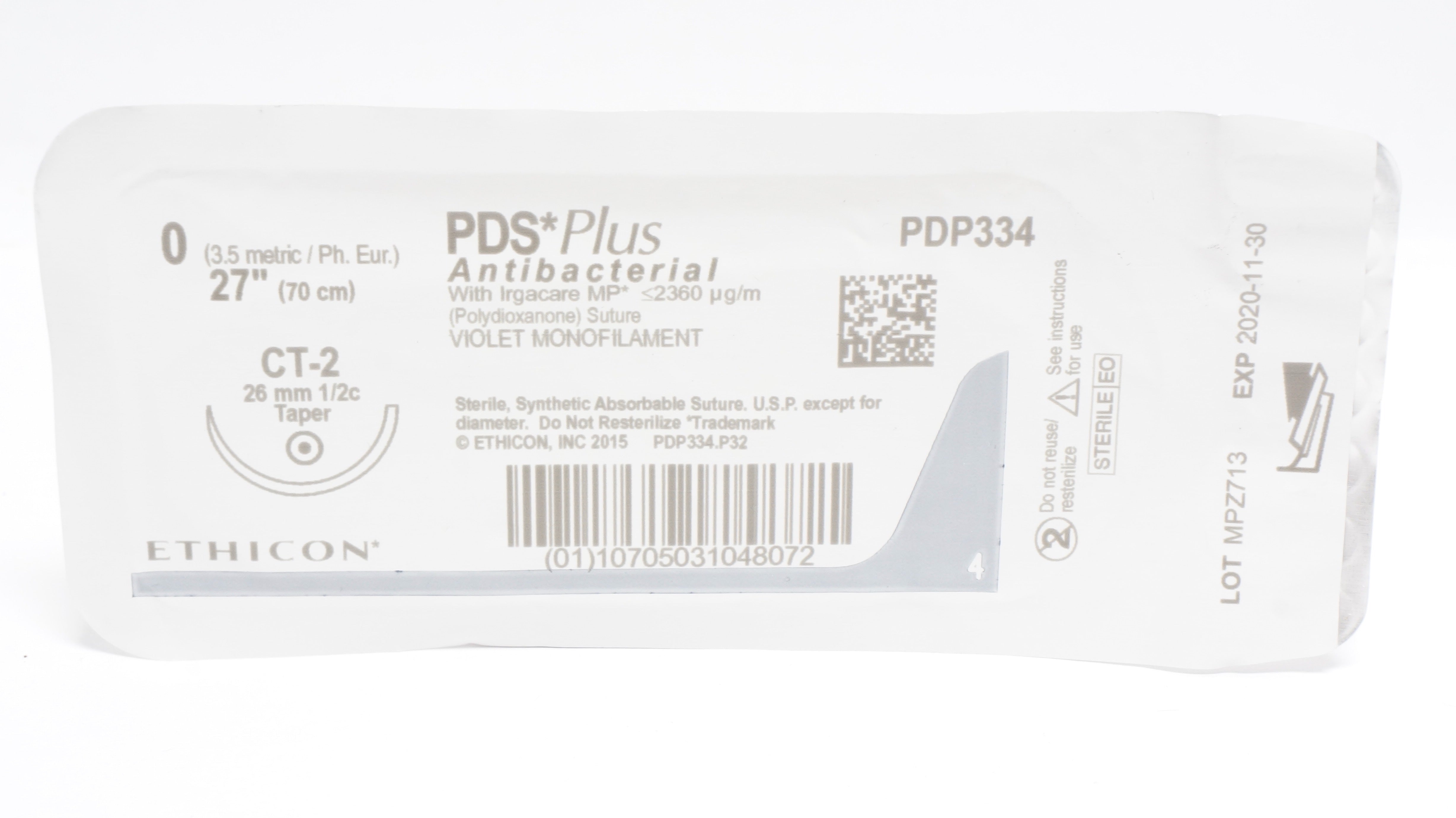 Ethicon PDP334 0 PDS Plus Antibacterial Stre CT-2 26mm 1/2c Taper, 27inch (x)
